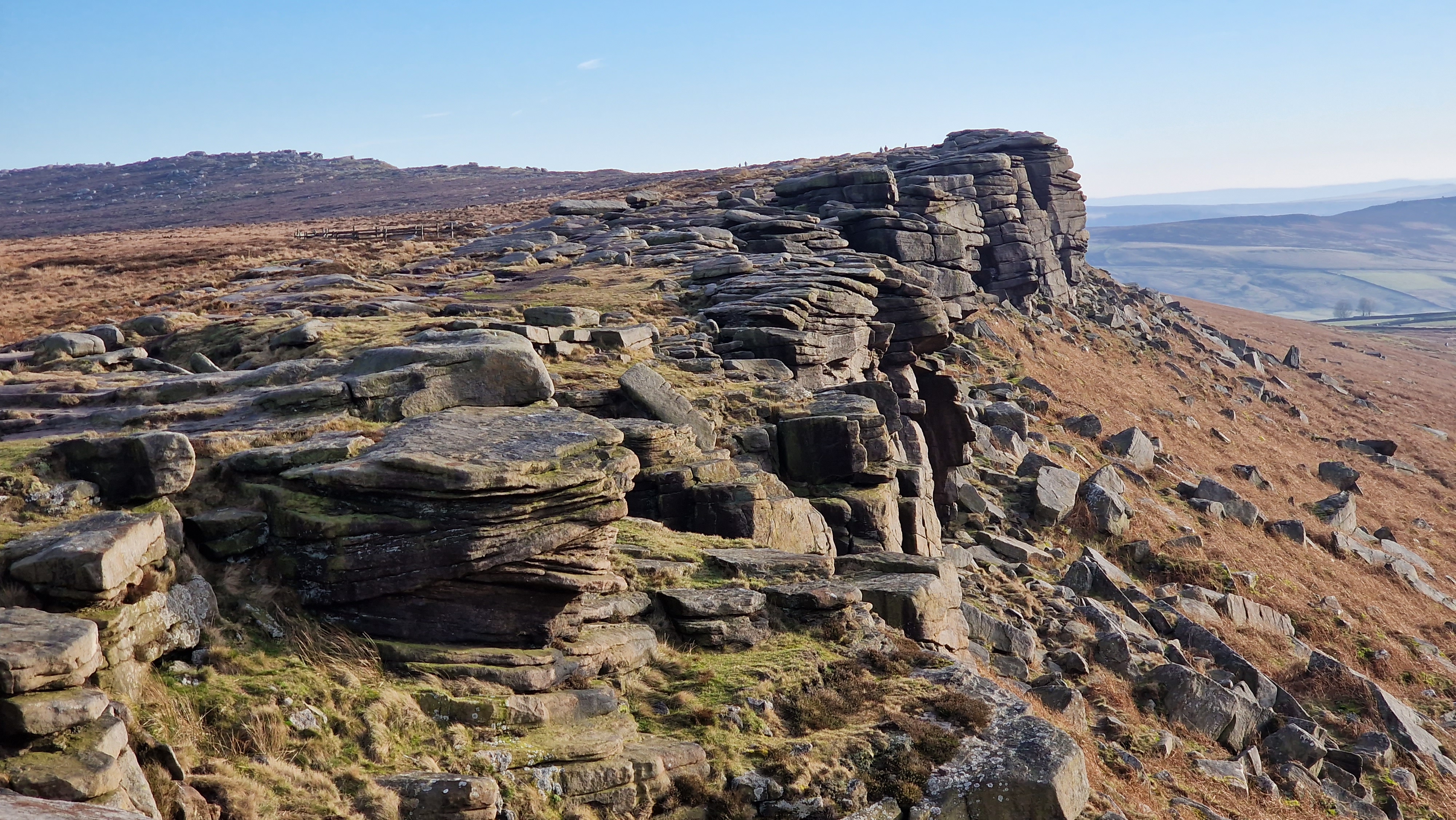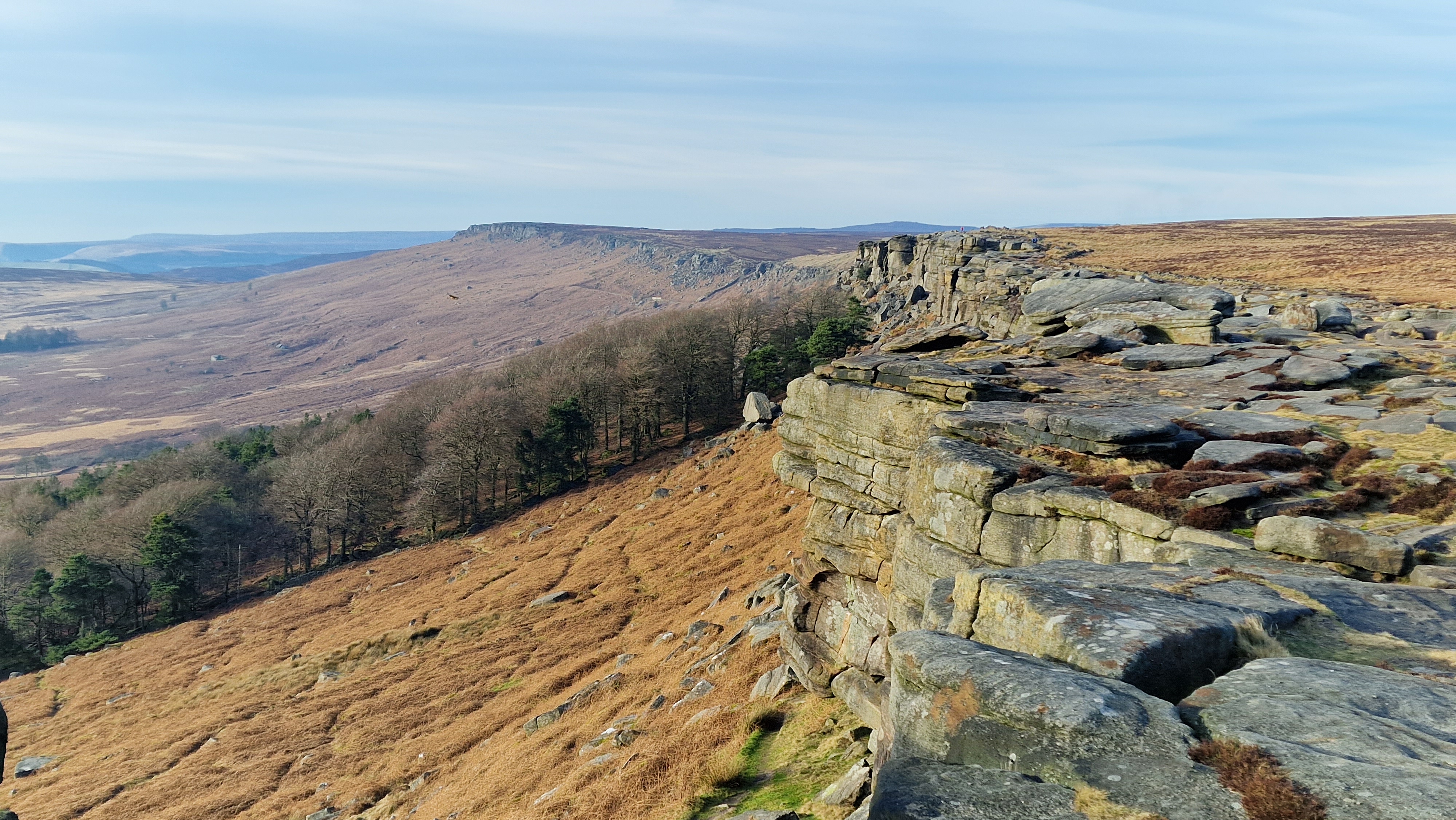 24th March 2025 A walk up to Stanage Edge from Redmires, then turned south to reach the White Path Moss trig point. There are great views from here down to Burbage Edge. Returned by the same way. The big sweep of the northern half of Stanage Edge is really impressive. Great to be able to get out to Stanage so easily.