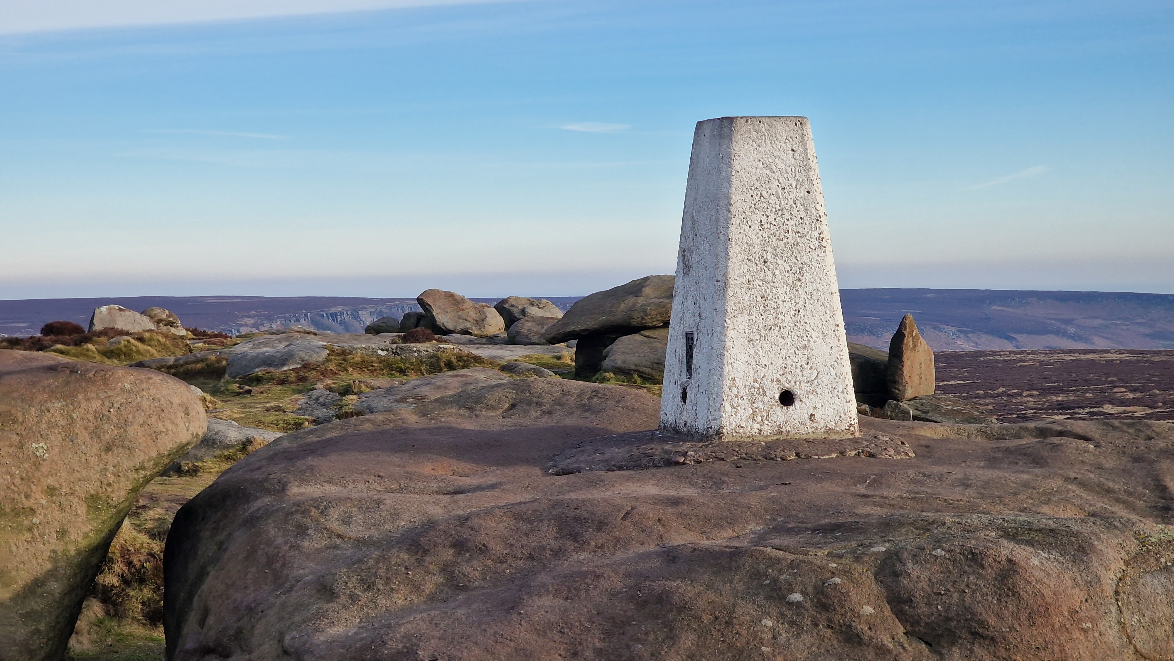 From the parking follow the thin path that climbs over the lower slopes below the edge, to then reach the top of Stanage Edge. Turn right, south, and along the top of the edge by the good path to reach the south Stanage Trig Point, named White Path Moss trig point. The trig point is set on top of some significant gritstone boulders that require some clambering to get to the trig point. On a good day there are excellent views north along the edge as well as over to the Hope Valley. For the full Stanage Experience, continue south and then east to reach Cowper Stone which marks the end of Stanage Edge. The views here are down Burbage Valley and further down south towards Chatsworth. (1.5kms. 100m. 0hrs. 40min.)