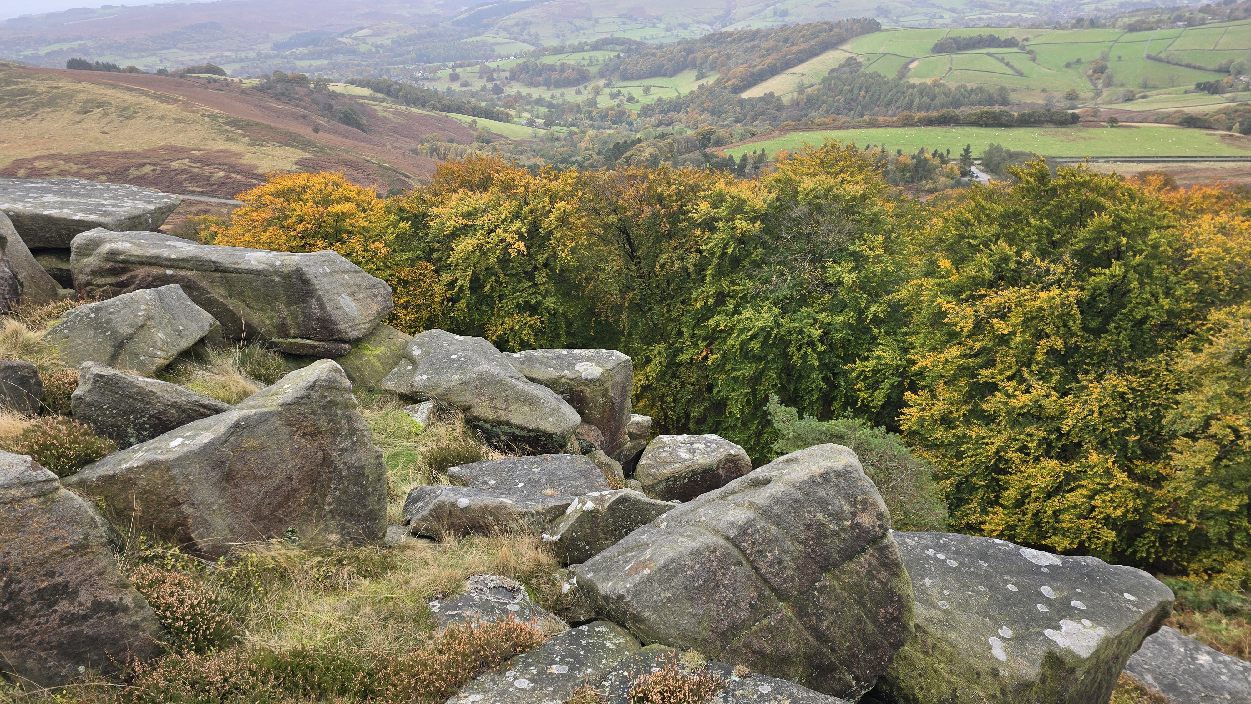 1st November 2024 Started by parking the car at Hooks Car parking. Below the parking and Stanage Edge is Carhead Rocks. I walked down the road a little to gain the path that goes along the top of Carhead Rocks. This gives some great views of Stanage. From here the top is followed to get to the road at Hollin Bank. Then directly up to Stanage and then along to the southerly trig point. A new area for me, Carhead Rocks, and well worth the visit.