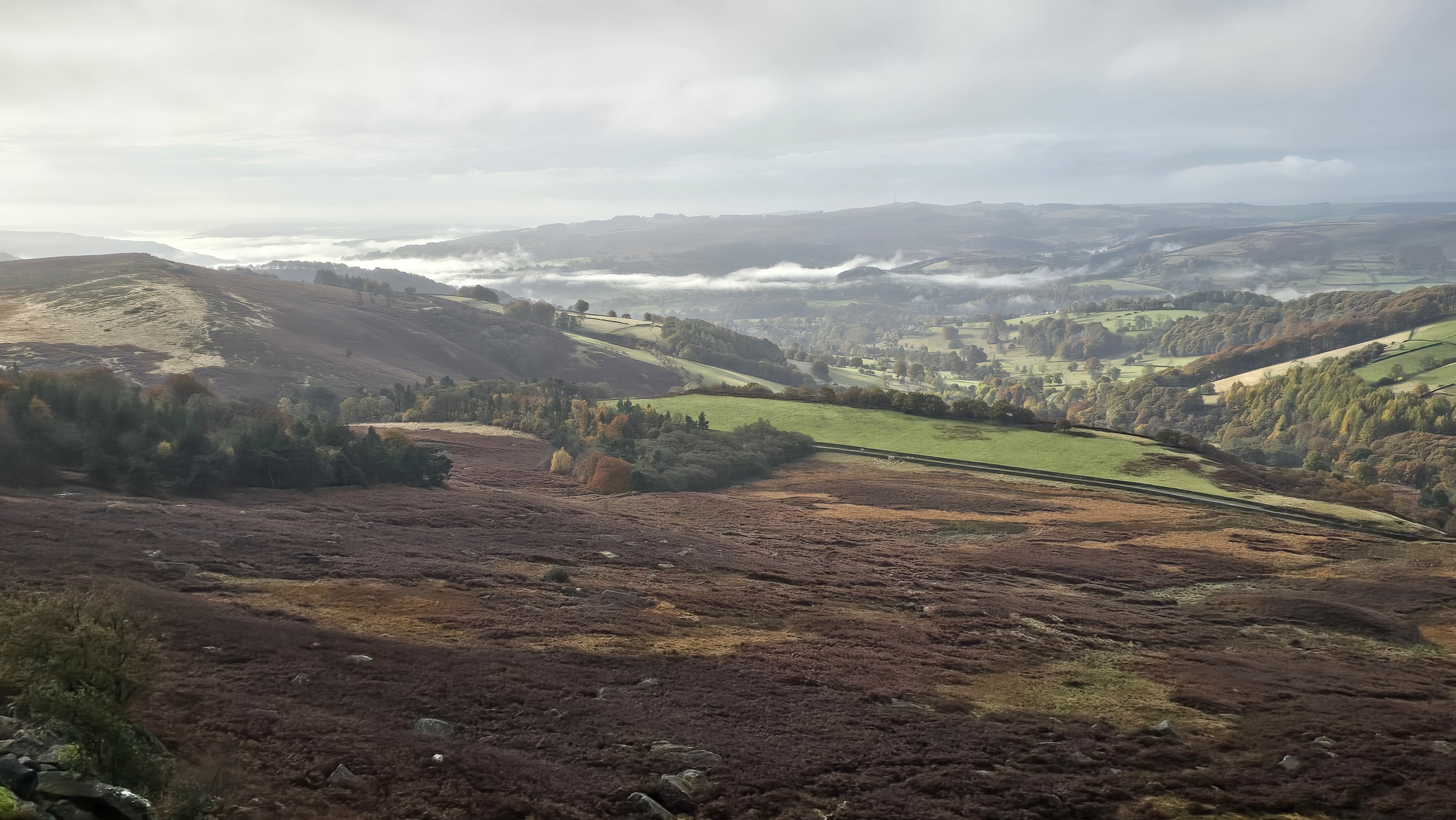 13th November 2025 A beautiful blue day, to start with, after a long period of rain. Walked up Stanage from Redmires to Stanage Pole then north to the High Neb trig point. A coffee at the 'coffee stop' with the best view. Clouded over as I walked back and then rain just as I got to the car.