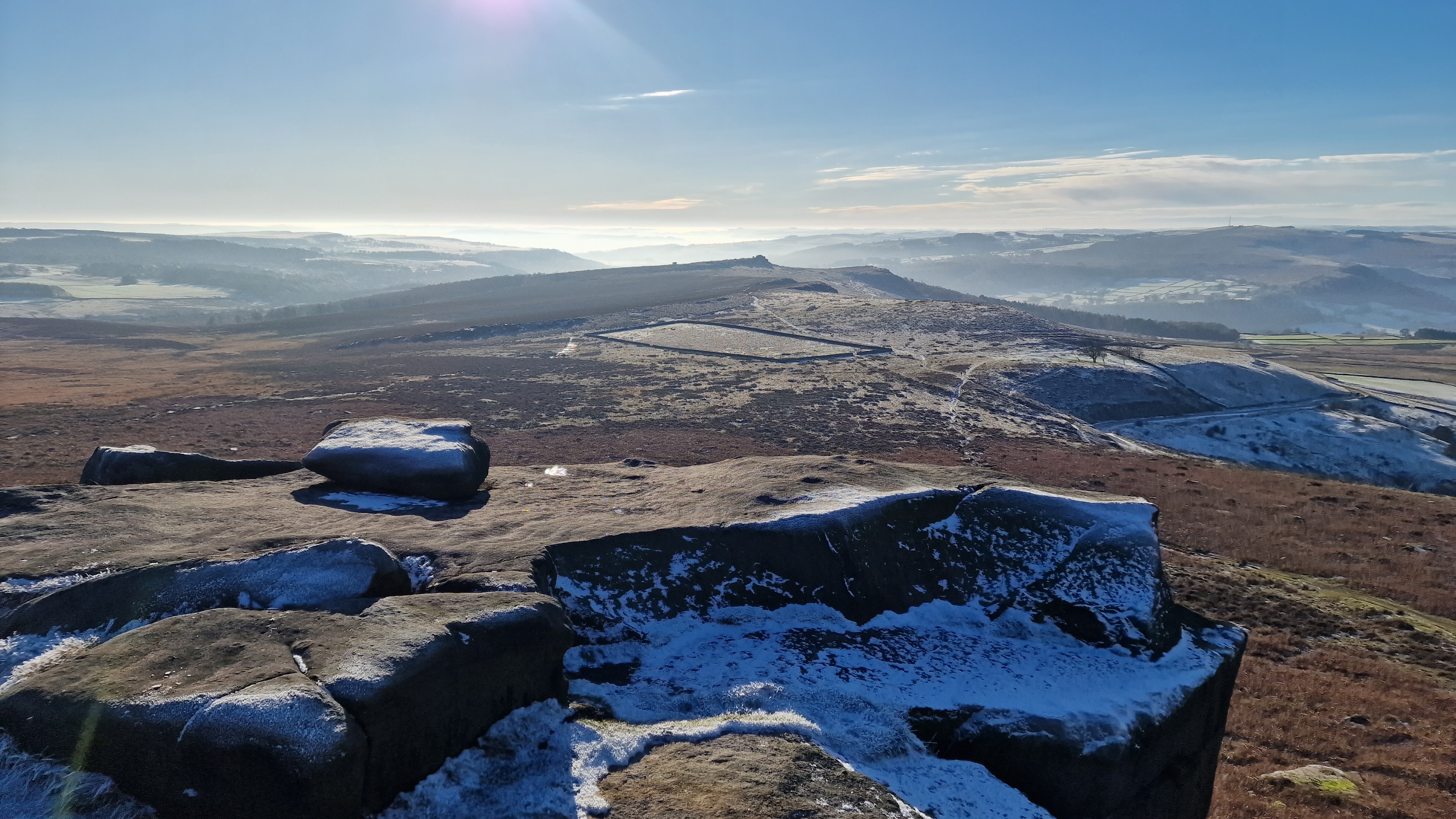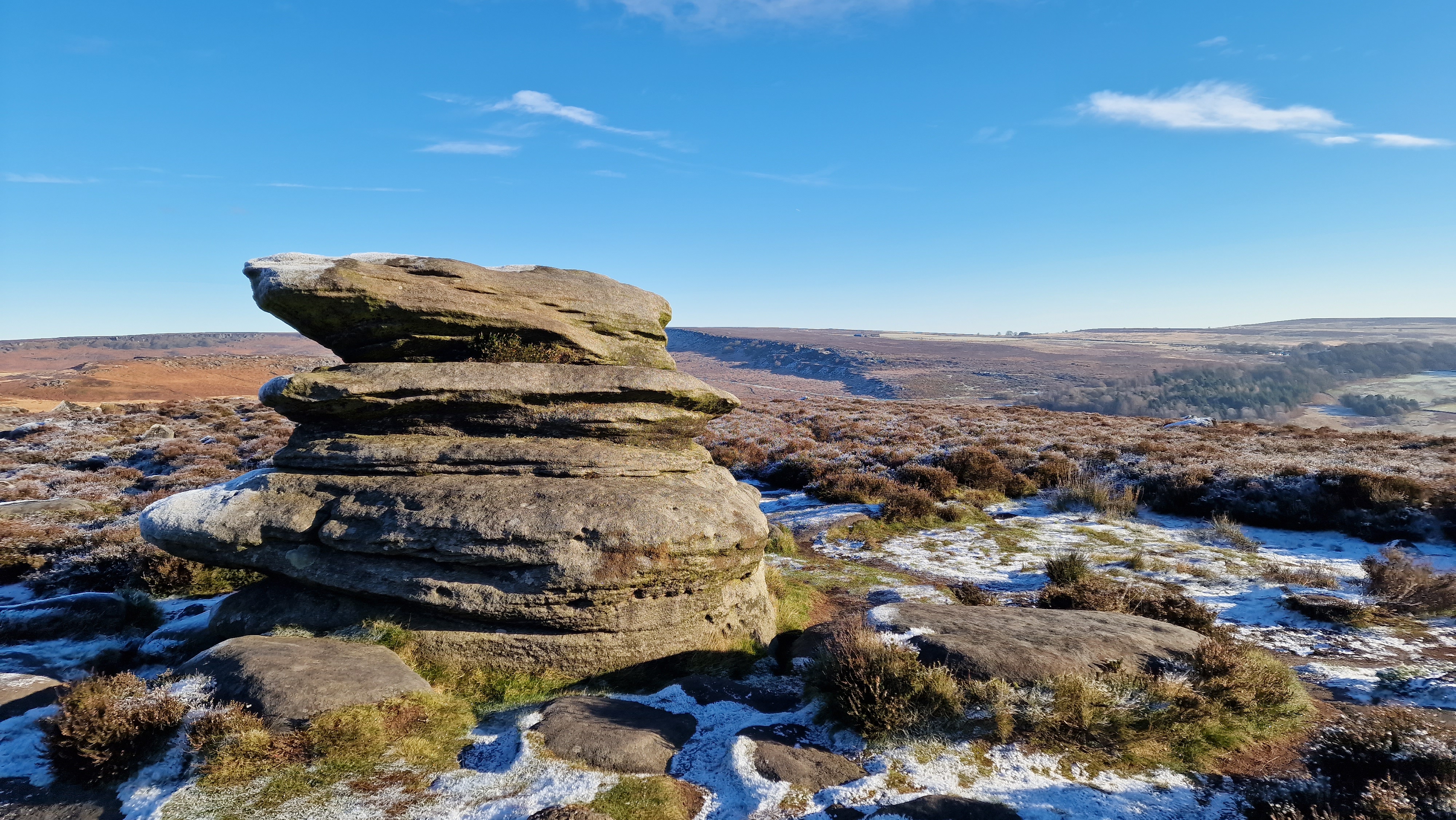 2nd December 2023 A freezing morning with deep frost over the whole of the Burbage Valley, and clear blue skies. What more can we ask? A great walk up Over Owler Tor, Higgar Tor, Burbage Valley then down Padley Gorge. Very busy as you would expect on a great day weekend day. [Note they are charging for parking at North Burbage Bridge now and the roadside is busy.]